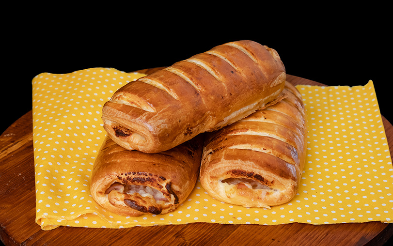 ROLNICA PEČENICA TOPLJENI SIR -Kvasno lisnati proizvod. -Bogato filovan sa kremastim filom od topljenog sira, sira i pavlake. -Komadi pečenice preko fila daju proizvodu nesvakidašnju punoću ukusa i mirisa. -Pravi je užitak pri svakom zalogaju.